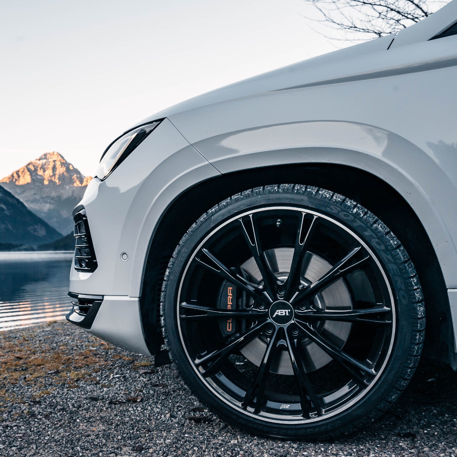 A este nuevo nivel de rendimiento se adaptan perfectamente los muelles de descenso ABT, que bajan el vehículo entre 25 y 30 mm más cerca del asfalto. Esto no solo mejora el comportamiento en carretera, sino también la estética del SUV. Además, las nuevas llantas de 20 pulgadas ABT GR lucen aún mejor en los pasos de rueda. Con su acabado en glossy black, neumáticos en medida 235/35 R20 y diez radios que se bifurcan hacia el borde, se convierten en un impresionante centro de atención.